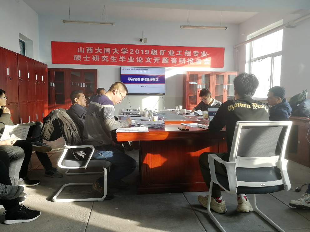 2021年1月3日,在山西大同大学新平旺校区成功召开了2019级矿业工程专业硕士研究生毕业论文开题答辩报告会。山西大同大学副校长姚丽英、党委研工部部长石风珍、煤炭工程学院院长宁掌玄、煤炭工程学院副院长张磊以及所有硕导参加了本次报告会。此外,还邀请了太原理工大学王然风教授、戚庭野教授、王朋飞教授以及晋能控股集团的牛福龙部长、赵军院长、刘大同所长作为此次报告会的答辩专家。